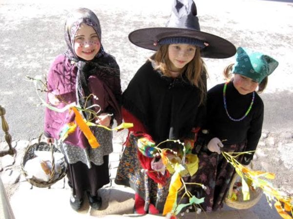 Crianças, especialmente as meninas vestem-se de bruxas, fazem pintas no rosto e saem às ruas com galhos secos de salgueiros decorados e distribuem de casa em casa para afastar maus espíritos, tudo em troca de doces.