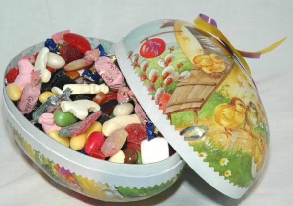 Curiosidades: os ovos não são de chocolate, são de papelão decorados com galinhas e pintinhos recheados de guloseimas. Eles não usam o coelho como símbolo da Páscoa.